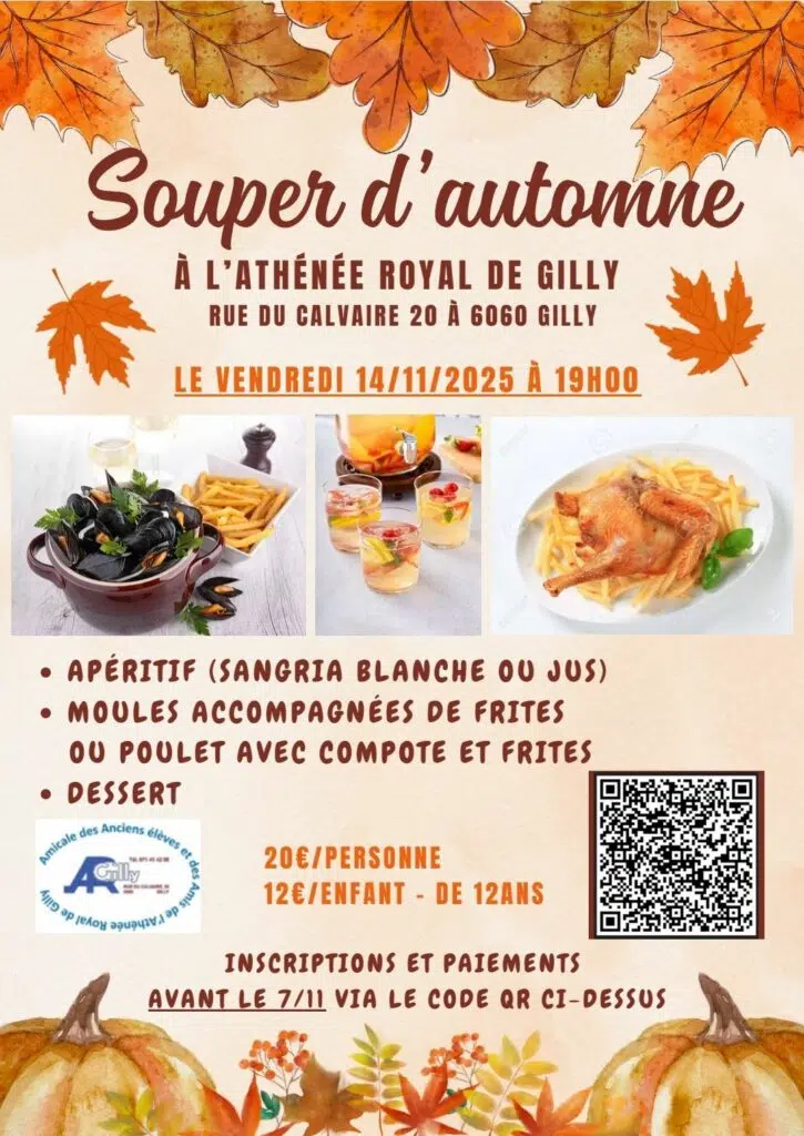 Lire la suiteL’Amicale des anciens élèves et des amis de l’Athénée Royal de Gilly a le plaisir de vous inviter à son souper, qui se tiendra le vendredi 14...